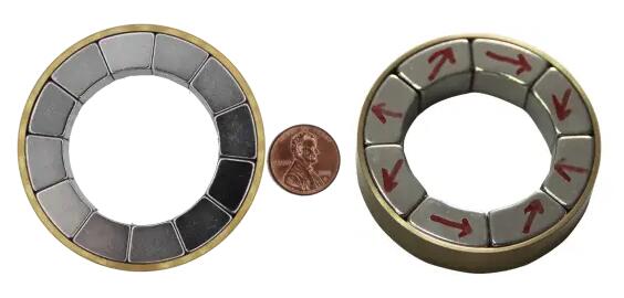 Geleneksel kalıcı mıknatıs motor mimarisi ile karşılaştırıldığında, halbach manyetik halkanın ayrışmasından sonra paralel manyetik alanın ve radyal manyetik alanın üst üste binmesi, diğer taraftaki manyetik alan mukavemetini büyük ölçüde arttırır, bu da motorun boyutunu etkili bir şekilde azaltabilir ve motor yoğunluğunun gücünü artırabilir.